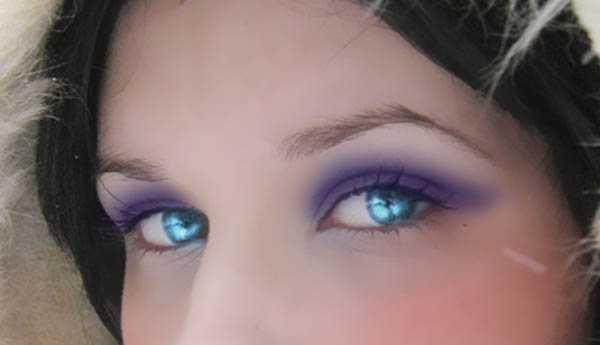 14、新建一个图层,把前景颜色设置为深蓝色,用画笔把人物眼影部分涂上蓝色。