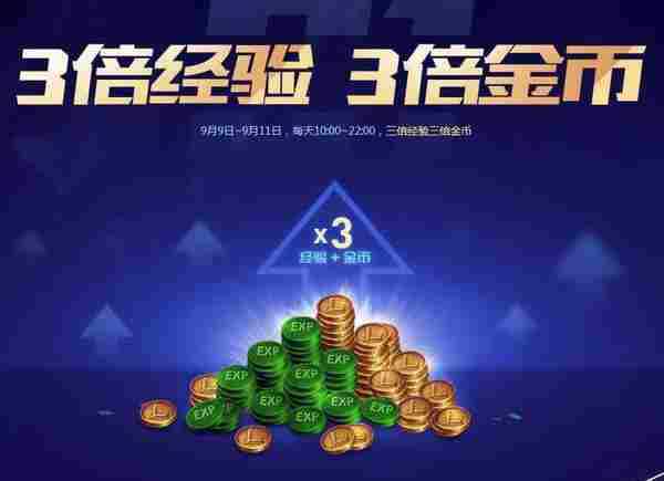 9月9日~9月11日,每天10:00~22:00,玩家将获得三倍经验三倍金币的加成。