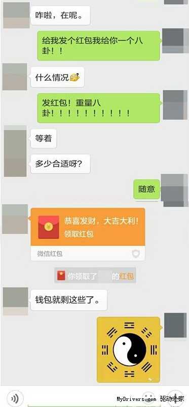 估计很多人都收到过这样的微信消息,“给我发个红包,发给你一个八卦”,万万没想到,破财之后,对方真的发过来一个“八卦图”。对普通人来说也就笑笑罢了,但武汉有一男子却凭此在短短1小时内获得了300元的红包。