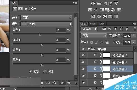9)最后再做一次选取颜色,这里还是在暗部的黑色里下功夫,因为我刚才说过,学会了调整暗部的色彩,就学会了调色。