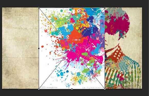 同样的按住shift+alt ,等比例调整背景图的大小,使得画面全部被覆盖,然后点击正片垫底,此时达到的效果便是