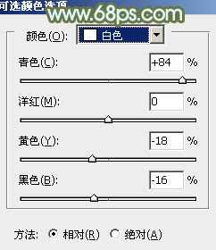 2、创建可选颜色调整图层,对黄、绿、白进行调整,参数设置如图3 - 5,效果如图6。这一步给图片增加橙黄色,并把绿色调淡。