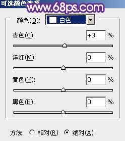 10、创建可选颜色调整图层,对红、黄、白进行调整,参数设置如图17 - 19,效果如图20。这一步增加图片高光部分的暗蓝色。