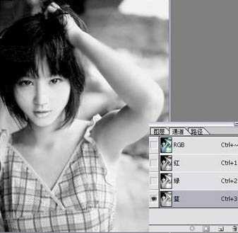 3、把背景图层复制一层,得到背景副本,点通道面板,选择蓝色通道按Ctrl + I 反相。