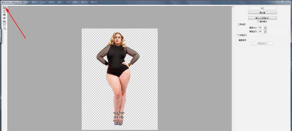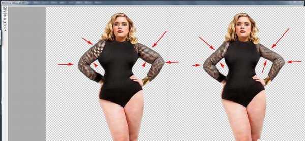 5、调整的时候要做到心中有数,讲究方法和步骤,这个模特的腿胯部分胖的比较夸张,所以我们选择腿胯作为第一步的瘦身调整对象。