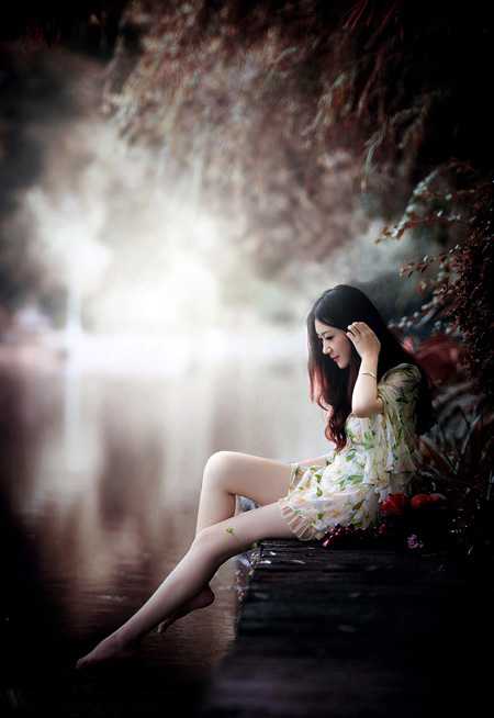 17、新建一个图层,混合模式改为“正片叠底”,把前景色设置为暗红色:#2D2423,用透明度较低画笔把底部及右侧底部区域涂暗一点,效果如下图。