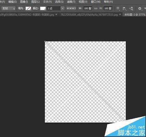 4、设置完成后,利用钢笔工具分别点击右上角和左下角。同样左边也是重复,分别点击左上角和右下角。在两条斜线交叉的中心位置写上需要标注的图片来源。不用担心此时看不清楚。点击编辑>定义图案,定义图案名称。