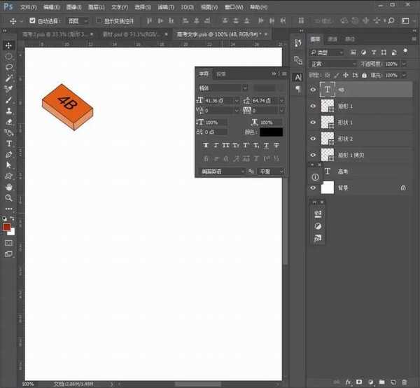 打开【PS】,新建任意画布大小,输入“高考”两字,方便我们可以更好的参考。使用【矩形工具】,绘制一个小矩形,【ctrl+t】自由变换,稍微旋转变换一下角度,填充颜色为橘色,如图
