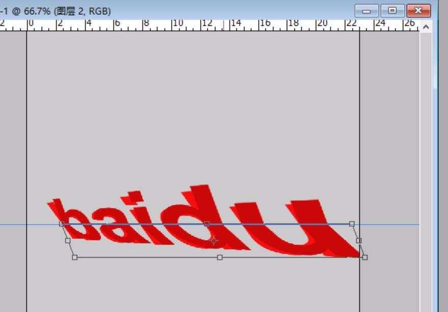 4、我们先对文字的上半部分使用一下斜切的效果,用较浅的红色来进行填充。