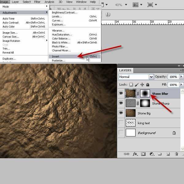 22、按Ctrl点击“Stone Sharp”蒙版得到选区,选择“Stone Blur”图层添加图层蒙版,再选择菜单:图像 > 调整 > 反相,如下图。