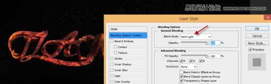 把选区粘贴到文字上,并把图层混合模式改为强光: