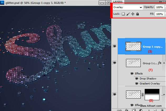 19、把原文字图层复制一层,把填充及不透明度都改为:100%,并清除图层样式,把混合模式改为“叠加”如下图。