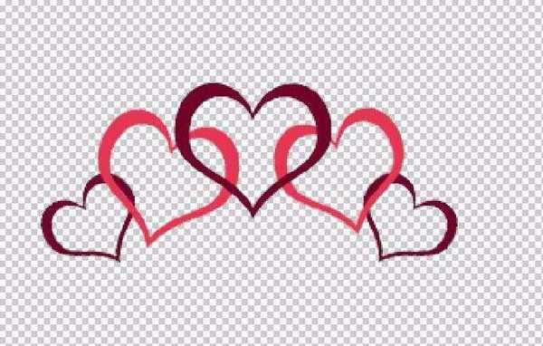 构思:在绘制之前要精心的构思一下,我们设计五颗心连在一起的图形,从小的心到大的心,呈现一个从两边到中间的对称样式,这五颗心不是简单的堆放在一起而是一颗心连着一颗心,两两相连接的。