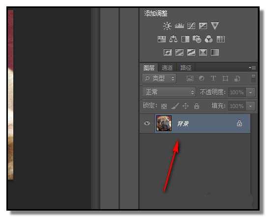 在操作界面右下方,这里显示着图层面板;面板中显示着各个图层;现在,有一个背景图层。