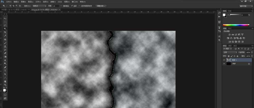 4、选择魔棒工具,容差设为15左右,对中间黑色带点击选取。