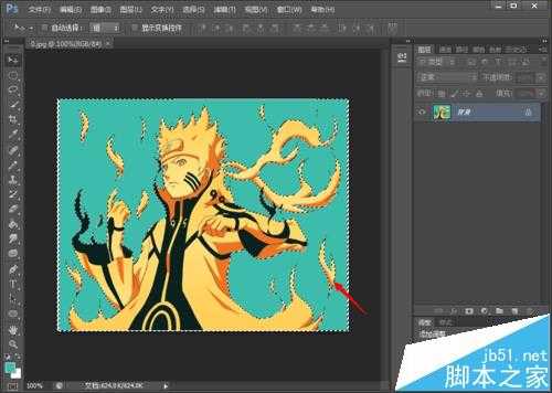 2、选择以后我们发现,图片中大部分背景都被选中了,但是还有一部分没有被选中。