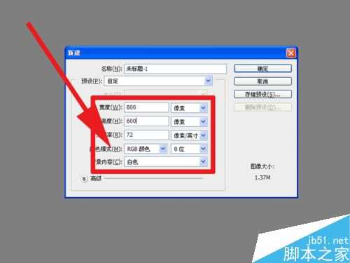 启动photoshop cs5,执行文件-新建命令,新建一个大小为800*600,分辨率为72,颜色模式为rgb,背景颜色为白色的文件。