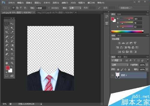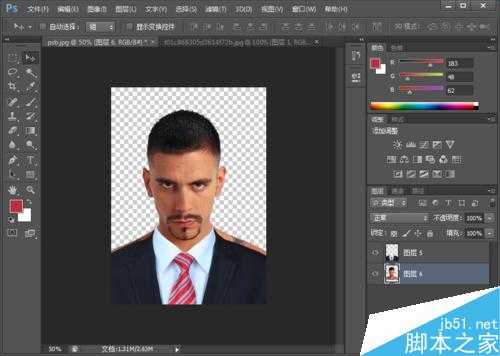 用PS抠出人物主体(用魔术棒抠,不明白的可以网上找找抠图这一部分自己学习),然后移动到西装那里面