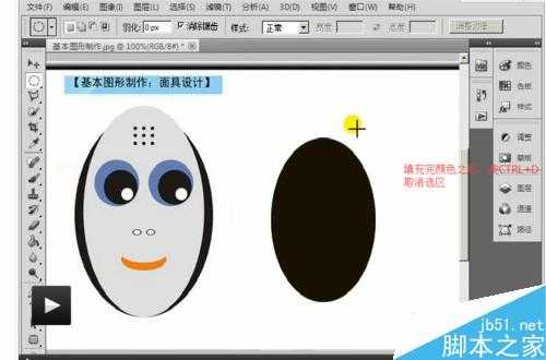 一张简单的脸谱的绘制,可以让我们将选区,前景色,背景色及填充工具进行好好的练习,下面和我一起来练习一下吧。