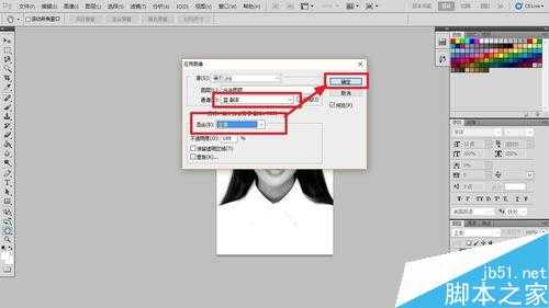 6、然后选择背景副本图层,选择菜单栏的图像→应用图像,弹出应用图像面板,面板上选择通道→蓝副本;混合→正常,接着点确定