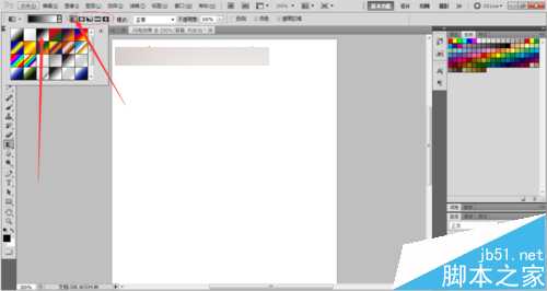 第二步,接下来我们需要给这个图层进行渐变填充,如图所示,选择渐变填充工具,点击一下图中箭头所指的地方,选择渐变颜色和填充的样式,颜色我们选择黑色到白色的渐变,朋友们可以研究一下其他不同种类的渐变效果。