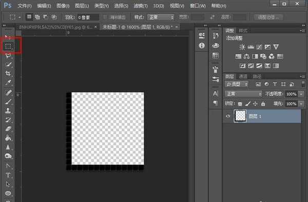 1、将准备好的素材拖入PS中,并且新建一层透明图层命名为图层1.