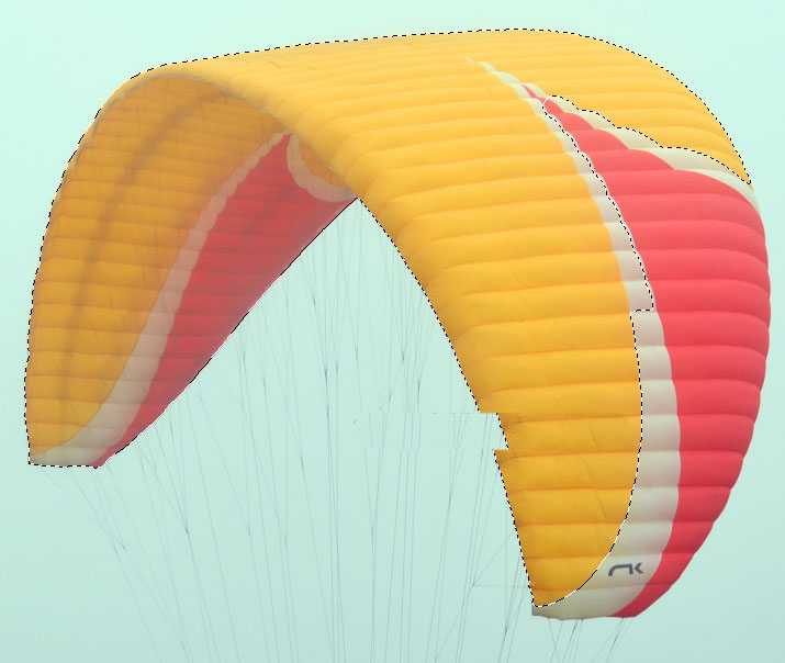 降落伞在电视上很常见,对降落伞进行抠图的难点是降落伞有很多很细小的线,不小心的画,很容易损失细节,用通道抠图就不行了,但是我们可以直接用直线工具画出来;伞的其他部分可以用快速选择工具,及钢笔工具抠出。