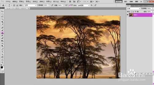 首先我们将需要抠的图打开,然后进行观察,下面这幅图的树树颜色看起来比较一致,我们就利用反相来进行抠图操作。
