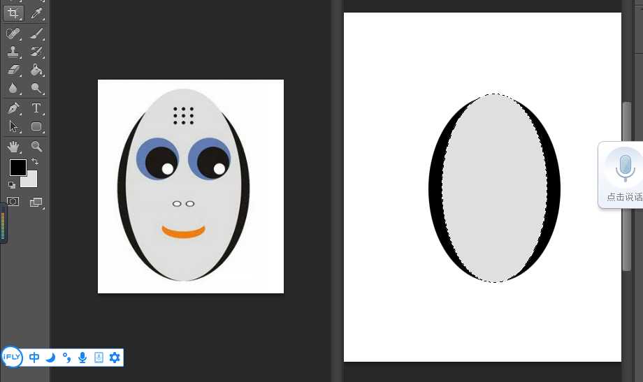 6、脸谱的左右眼睛是一样的,在这里我们按ctrl+alt+移动工具复制,一个一模一样的眼睛,拖至脸谱的左侧