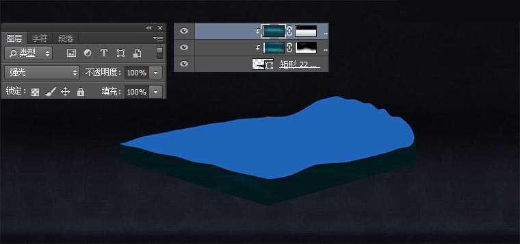 制作桌台厚度(背光面2),新建矩形框,放置画面最底部,填充#0f1016,图层模式设置为正片叠底,不透