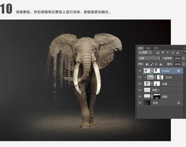 PS合成创意超酷正在沙化的大象