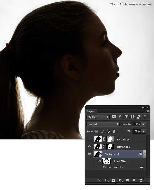 2、复制背景图层,命名为“Face Shape”。用钢笔工具抠出小女孩的轮廓,然后点击:图层——矢量蒙版——当前路径。