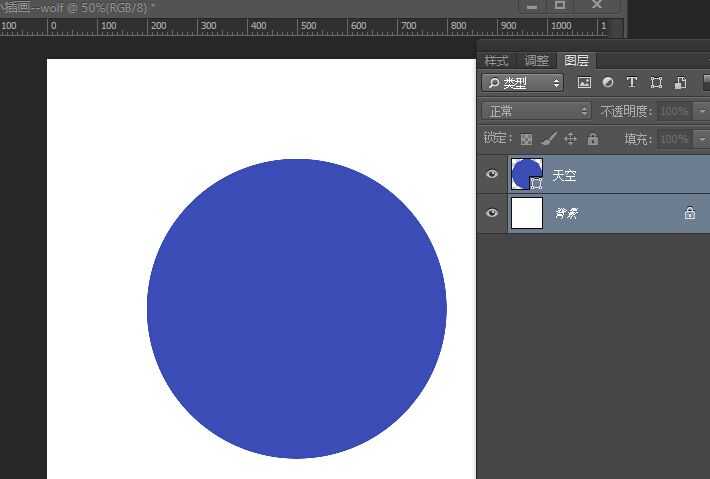打开PS,新建画布W1000*H1000 用椭圆工具,画一个W600*H600的蓝色的正圆,命名天空,色值#3c4db8