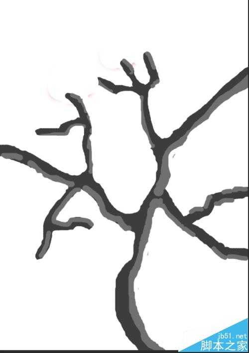 5、利用前景色,在文档中画出如图所示的枝干。(画的时候一定要细心,该画粗的地方一定要画粗,该画细的时候画笔就一定得缩小画)