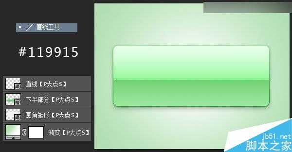 接下来,我们用直线工具,画一条直线,放到我们刚才的那个下半部分图层的顶部位置,设置颜色为#119915,现在,我们得到如下效果。