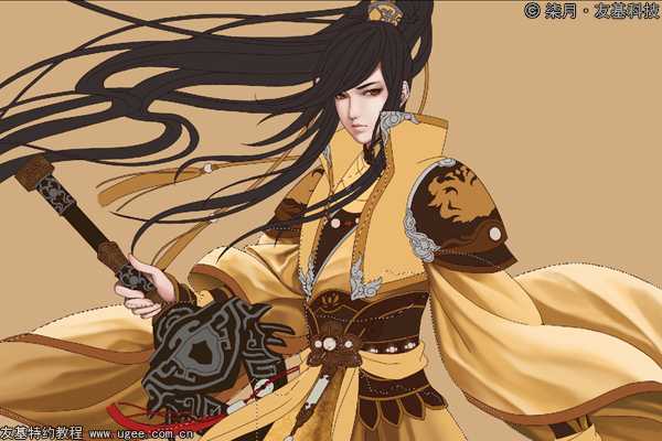 这是我为《剑侠情缘3》所绘制的同人图,用一种象征秋天的色调诠释在秋风肃杀的气氛中主人公的冷峻。下面就进入具体绘制步骤吧。