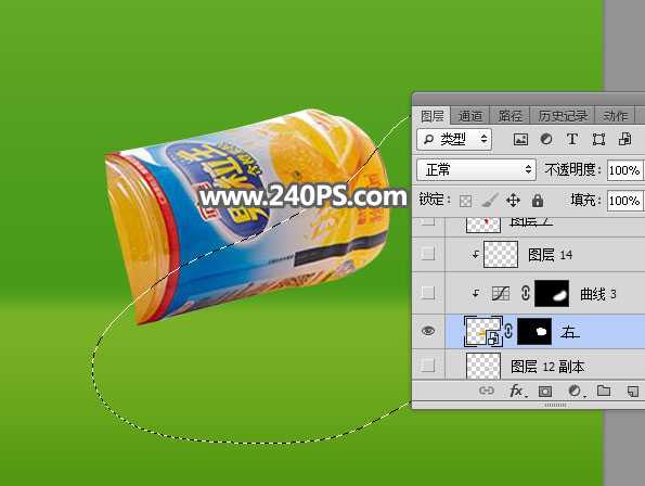 8、选择“套索工具”,勾出饮料的后半部分,然后添加图层蒙版。