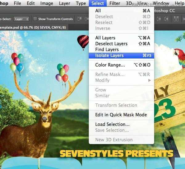 设置Command/Ctrl + Shift +A来取消所有选择的图层。