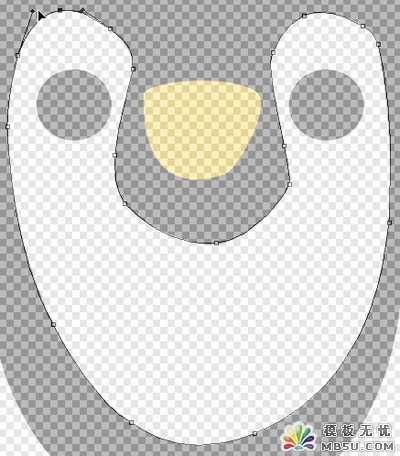 围绕着鸟嘴使用钢笔工具绘制并将前景色设置为 #fbdf26.填充路径并按下del删除键清除钢笔轮廓。