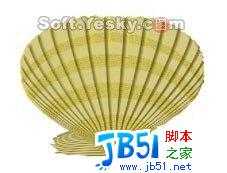 十三、链接图层一与图层二,将两图层合并(ctrl+E)。用多边形选择工具,在贝壳边沿勾出齿状,按Delete删除多余部分。(图十二)