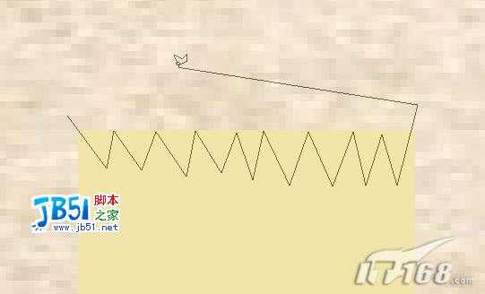 04. 按【Ctrl】+【D】键取消选区,使用【多边形套索工具】在“胶带”的上部绘制如图04所示选区,然后按【Delete】将选区内容删除,对“胶带”下部进行同样的操作得到如图05所示效果。