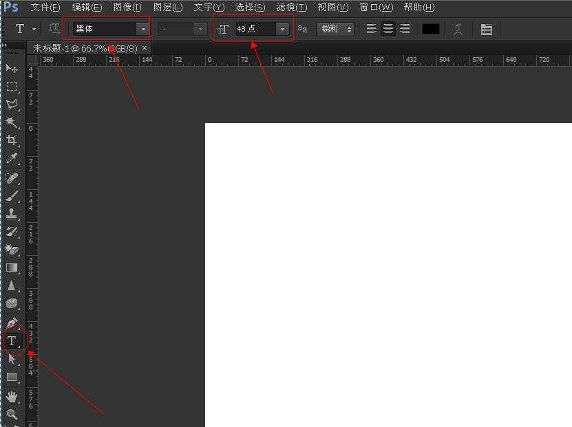 2、选择左侧工具栏中的“文字工具”;将文字工具栏设置为:字体:黑体;文字大小:48点,输入:“设计师小咔个性签名”(内容可以随意)