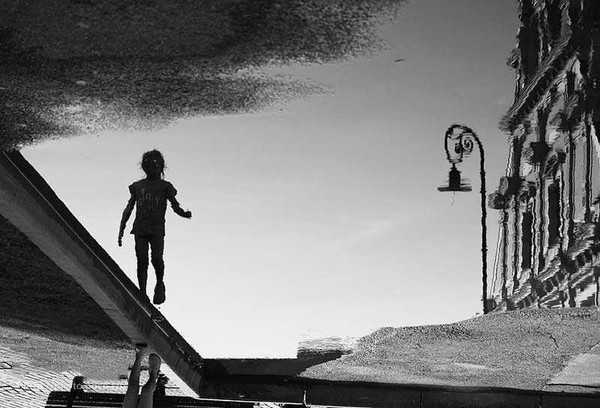 当你面前有一片积水,首先令人想到的不外乎是镜面反射效果吧。此时,以最靠近水面的角度取景,能最大程度截取积水的面积,让画面看起来像一大片水面,而不是一小滩积水。能达到最好的镜面效果。