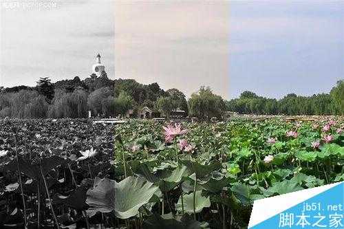 将同一地点拍摄的图片美化后,拼接做一张图片,形成反差对比