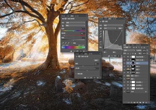 第五步 按住CTRL点击当前图层,再次载入选区,然后添加曲线调整图层,将区域提亮。