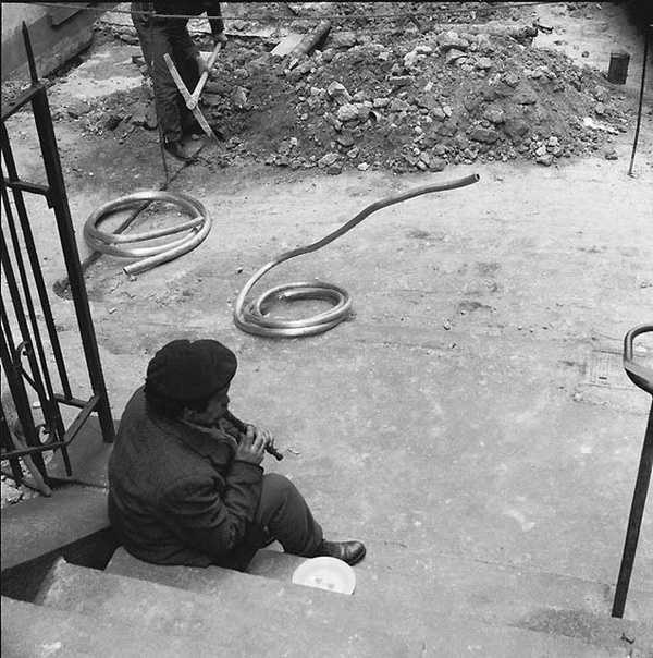 初看这幅图片,可能就是看见三个人(更细的可能联想到孩童)在光着脚丫晒太阳,可能作者是想展现生活的美好或者童年的美好吧。
