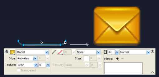 我们回到深色背景,有没有感觉到信封的两边显得有点平?我们用一个Bars或者Radial填充来加点效果上去。Step 11