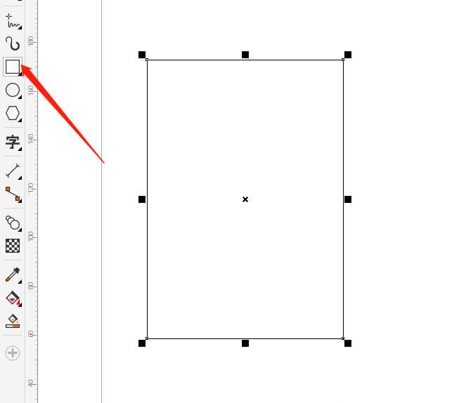 1、打开Coreldraw软件,新建页面后,单击左侧矩形工具,拖动鼠标得到矩形