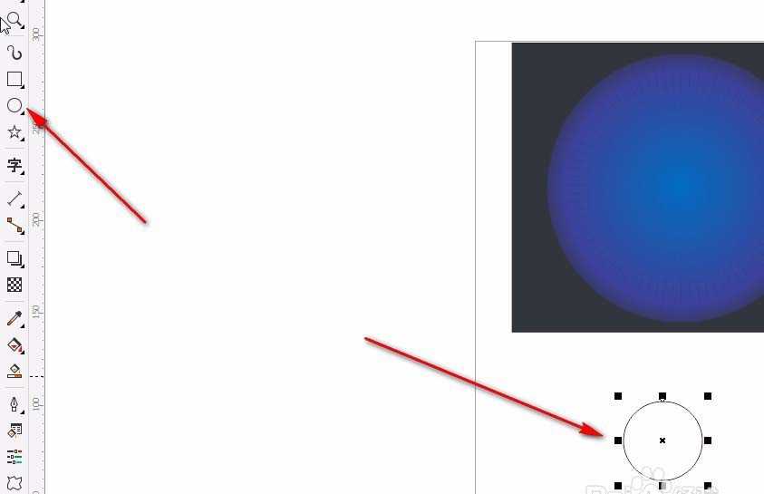 6、按F7选择椭圆形工具,按住Ctrl键,绘制一个正圆。按F11,均匀填充。右键单击取消轮廓。