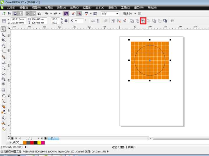 4、单击挑选工具,选中表格和椭圆,单击属性栏的相交按钮。